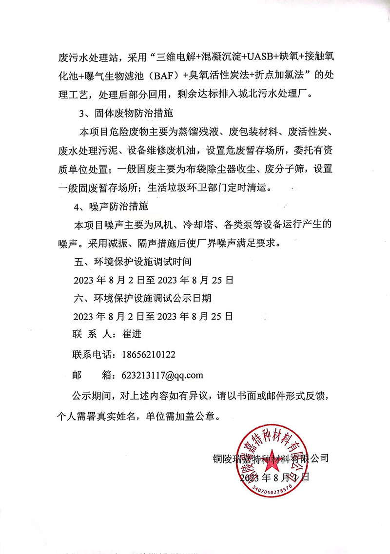銅陵瑞嘉特種材料有限公司 清潔生產審核公示